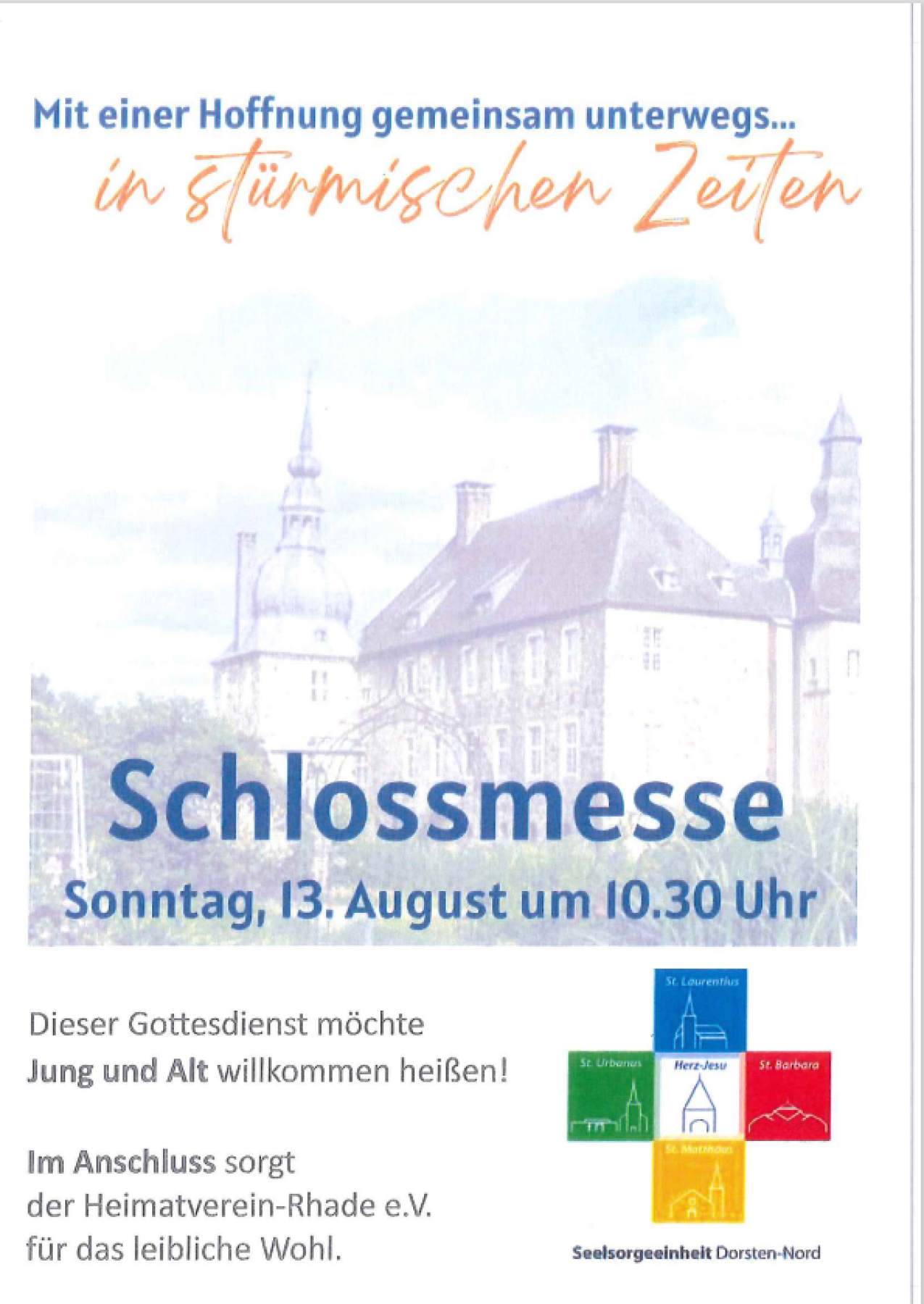 Die Pfarrei St. Laurentius lädt alle Familien herzlich zur Schlossmesse am Sonntag, den 13. August 2023 ein.