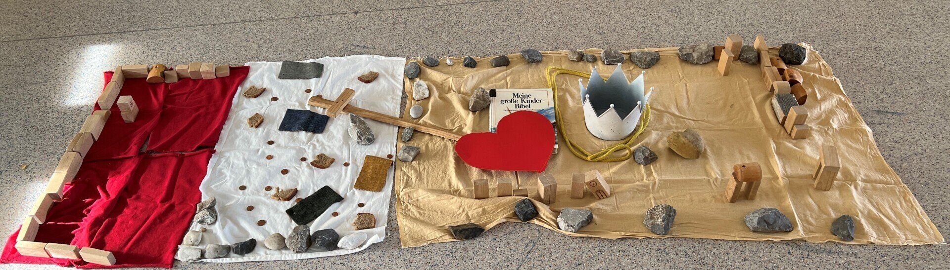 Heute haben die Kinder in den Gruppen den Namenstag des heiligen Martin gefeiert. Sie haben die Martinslegende gehört und mit Symbolen dargestellt.